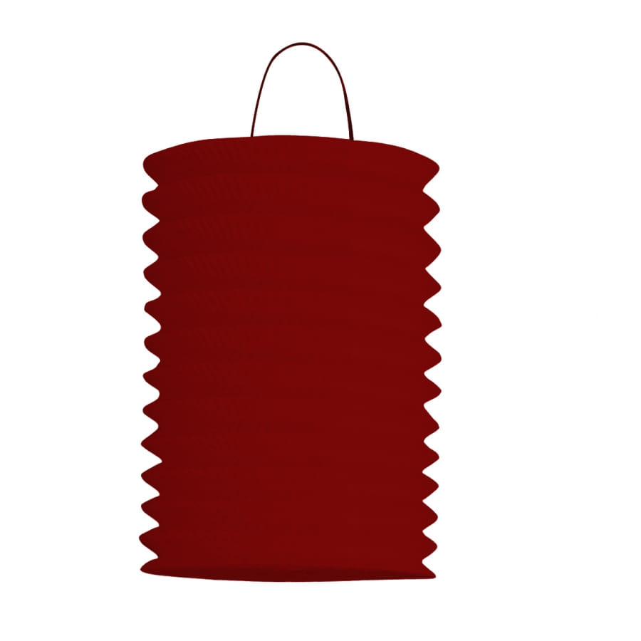Lampion cylindrique en papier de couleur bordeaux. Cet accessoire de décoration mesure 13 centimètres de hauteur. Il est idéal pour une fête asiatique ou romantique.