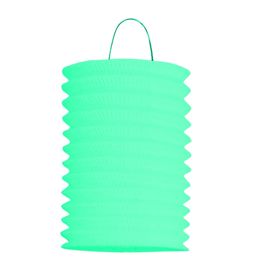 Lampion en papier de couleur turquoise. Cet accessoire de décoration mesure 13 centimètres de hauteur. Il est parfait pour créer une ambiance glamour à l'occasion d'un anniversaire, d'un mariage ou de la Saint Valentin.