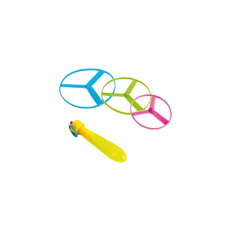 Lance-hélices de couleur jaune livré avec 3 hélices. Ce jouet sera livré comme présenté car il est impossible de choisir ni le modèle ni la couleur lors de la commande. Les hélices sont chacune d'une taille différente.