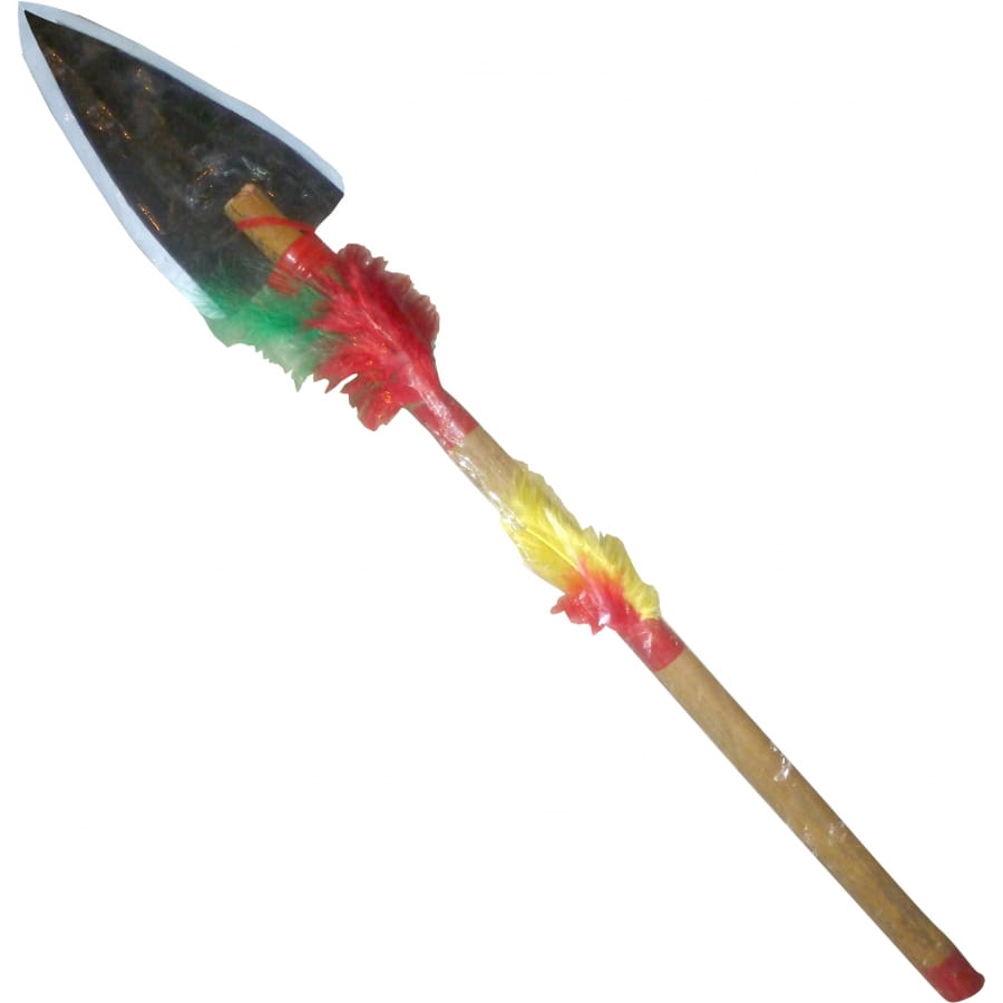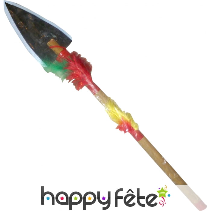 Lance d'Indien d'Amérique avec plumes multicolores pour homme, femme, adolescent, adolescente, fille ou garçon. Cet accessoire mesure 47.5 centimètres de long. Vous complèterez votre déguisement d'Indien avec succès grâce à cette lance!
