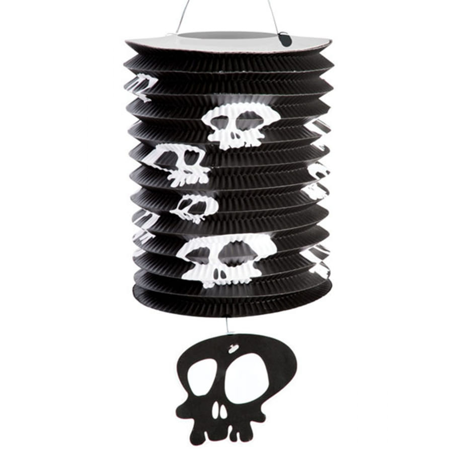 La lanterne noire en papier avec tête de mort est un accessoire décoratif idéal à l'occasion d'une soirée sur le thème cape et d'épée.