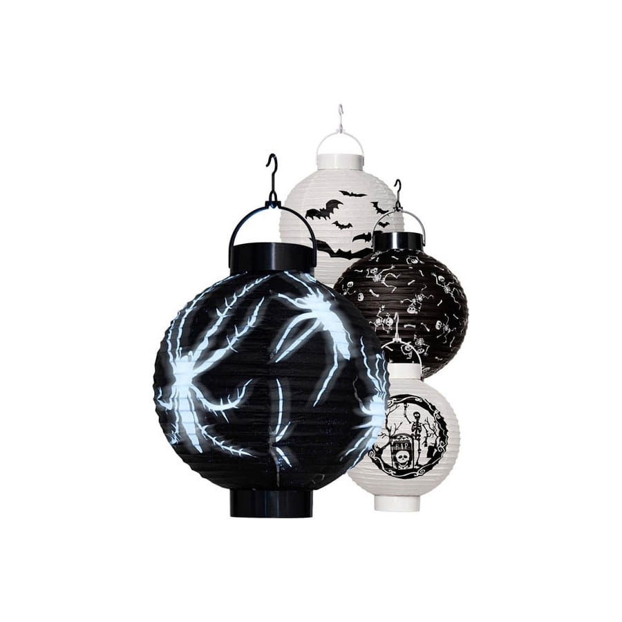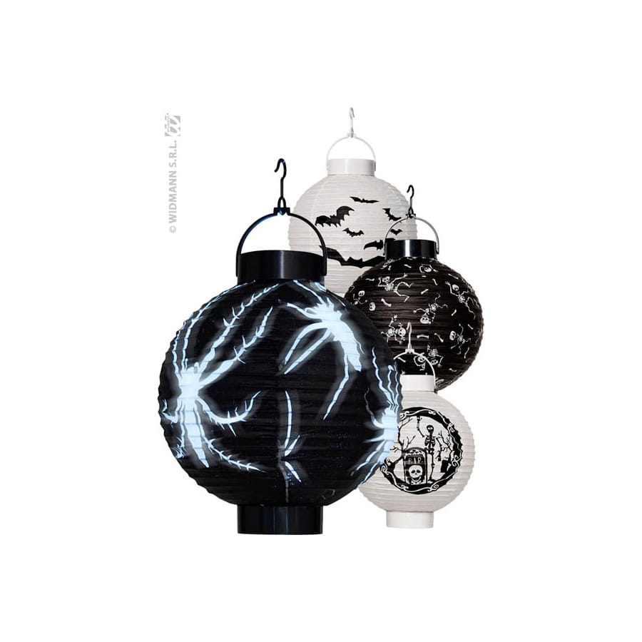 Ornez votre maison de cette superbe lanterne d'Halloween équipée de lumière LED. D'un diamètre de 20 centimètres, cette lanterne est intégrée d'un crochet pour vous permettre de la suspendre là où vous le souhaitez. Elle est livrée avec piles. Lors de la commande, il vous sera impossible de choisir ni le modèle ni la couleur des lanternes. Vous recevrez un des 4 modèles présentés.