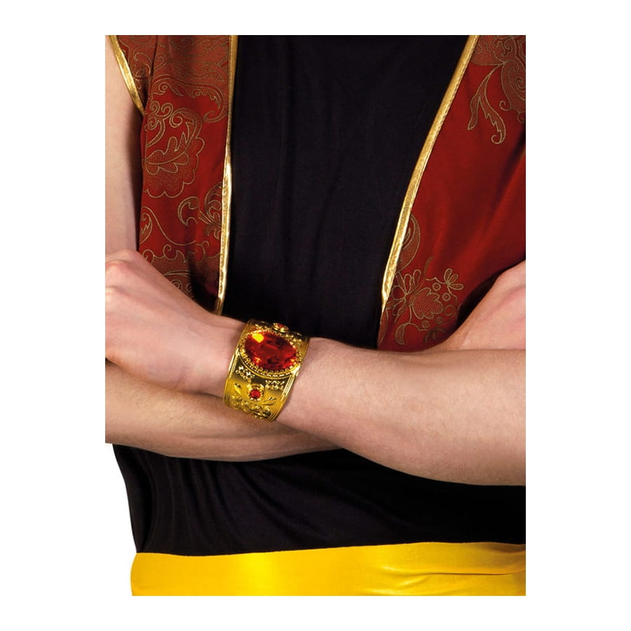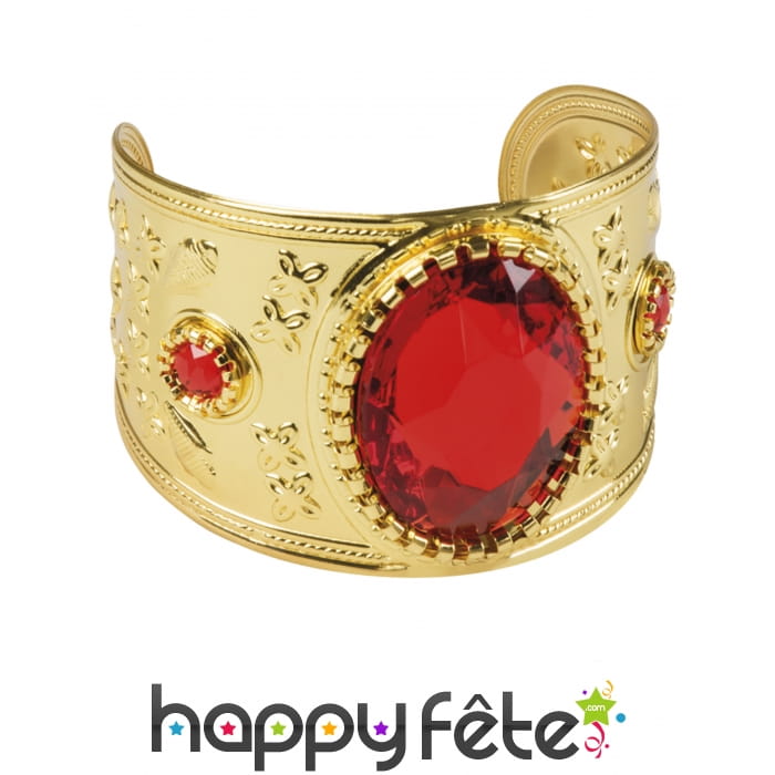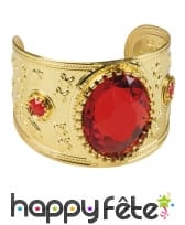 Le large bracelet oriental doré avec gemme rouge pour femme est en métal.