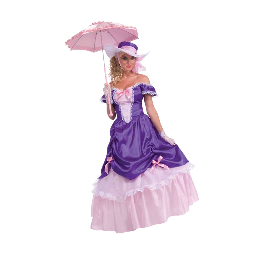 Il se compose d'une longue robe violette bouffante, laissant les épaules dénudées.