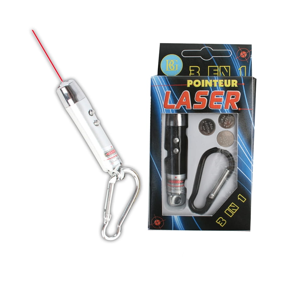 Choisissez ce magnifique laser sur mousqueton pour égayer vos fêtes ! En effet, c'est une petite lampe laser de 7 cm de long, livrée avec un mousqueton et qui pourra servir comme porte-clés. Celle-ci est de couleur argentée. Parfait comme lot de kermesse, pour faire plaisir aux enfants mais aussi pour décorer votre sac !