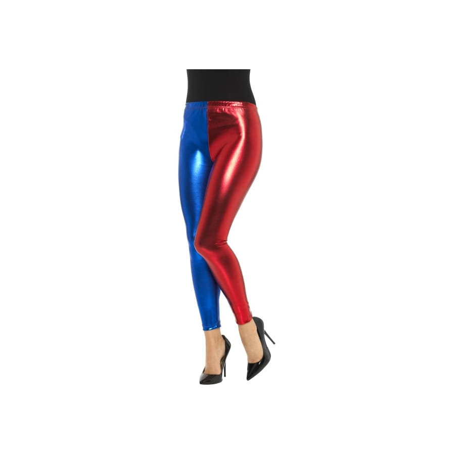 Mesdames, vous serez tout simplement au top du style avec ce legging arlequin bleu et rouge effet métallique. Comme sur notre modèle, chaque jambe est de différente couleur, l'une rouge et l'autre bleue. Ce legging moulant effet métallique est idéal pour les soirées Disco, et si vous rajoutez un haut blanc, il deviendra aussi très patriotique.