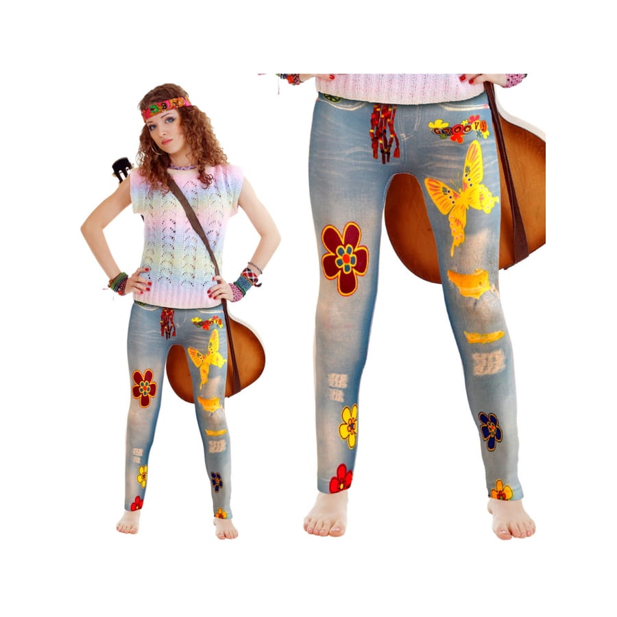 Le legging motif jean fleuri style hippie pour adulte est destiné aux femmes.