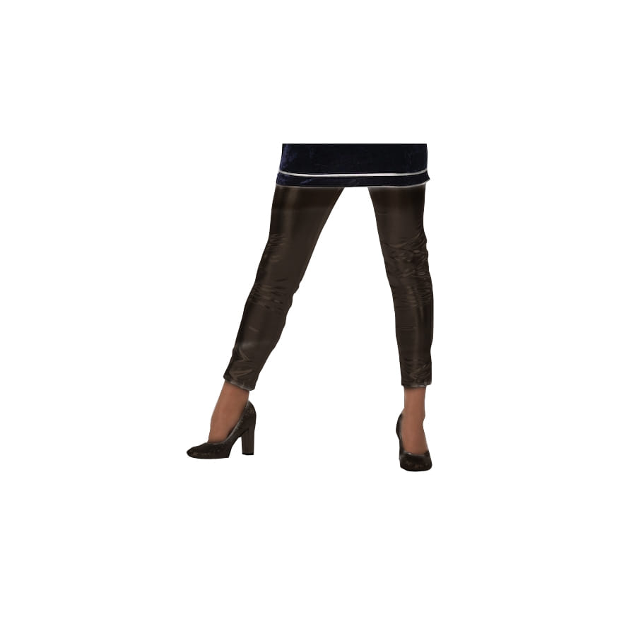 Soirée Rock n roll avec cette paire de leggings en simili noir satiné. Cet accessoire est disponible en taille 36, 38 ou 40. Il est parfait pour se déguiser en rockeuse.