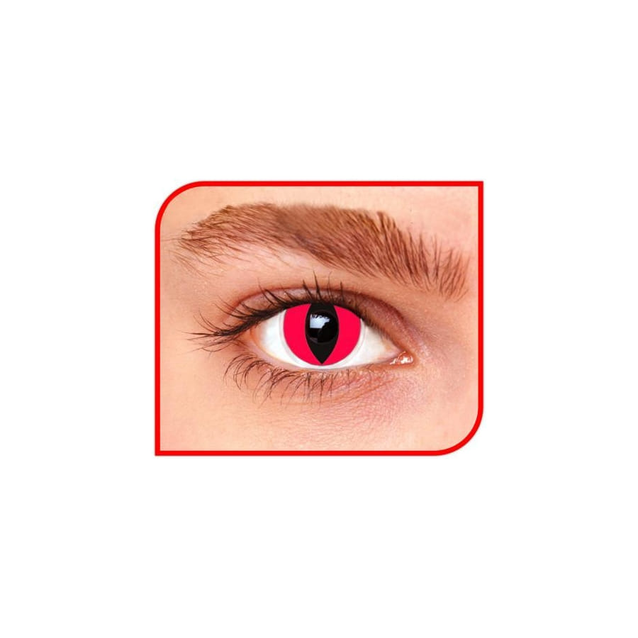 Voici des yeux de chat particuliers que vous pourrez porter lors d'une soirée d'Halloween. Incarnez une belle diablesse ou un prince démoniaque avec ces lentilles de contact à thème oeil de chat. Elles vous donneront des iris de couleur noire et des pupilles rouge sang. Vous disposerez d'un modèle de nature souple, sans dioptries et de durée d'utilisation variable. Vous aurez le choix entre un mois et un an de durabilité. Quant à leur conservation, chaque lentille s'entrepose dans un flacon en verre avec de la solution saline.