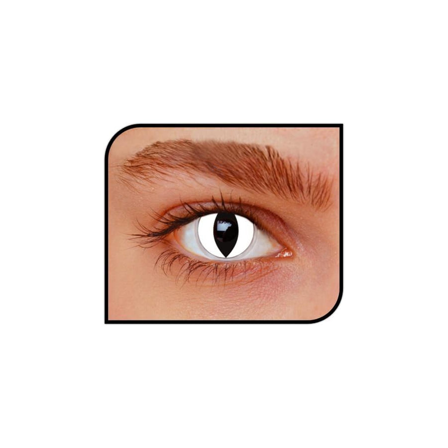 Avez-vous déjà remarqué la beauté de l'oeil d'un félin, mais surtout celui d'un chat ? Eh bien vous avez désormais la chance de vous en inspirer grâce à ces superbes lentilles de contact. Afin d'incarner la belle Catwoman ou bien pour compléter un déguisement à thème animal, optez sans hésiter pour ce modèle. Il présente des yeux de chat très réalistes, de couleur noire et blanche. Les lentilles sont sans dioptries et aussi très souples. Vous pourrez choisir entre celles qui vous dureront un mois ou celles que vous pourrez porter jusqu'à un an. Chaque lentille s'entrepose dans un flacon en verre avec une solution saline pour la conservation.