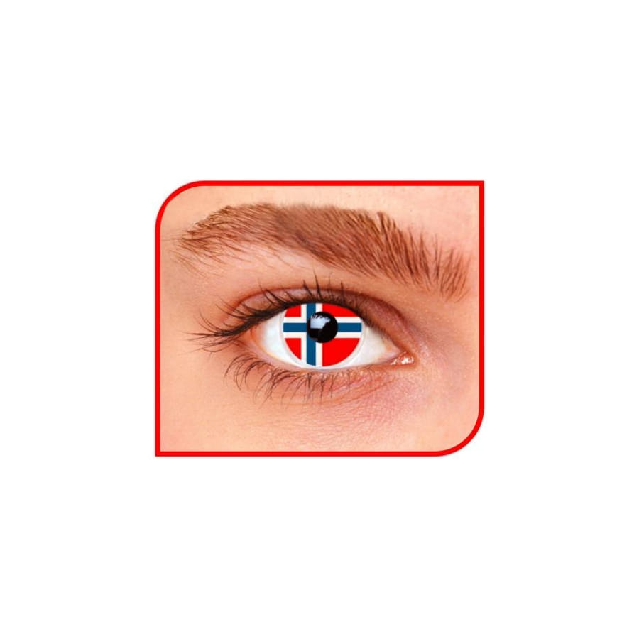 A l'occasion de la fête nationale norvégienne, osez ces belles lentilles de contact. Plus besoin de hisser votre drapeau, vous l'aurez jusqu'au fond des yeux ! Ces lentilles vous offrent la fameuse croix bleue bordée de blanc sur un fond rouge. Elles sont souples, sans dioptries et aussi fournies avec des flacons en verre et de la solution saline. Vous pourrez opter pour des lentilles utilisables pendant un mois ou pour le modèle d'une durabilité d'un an.