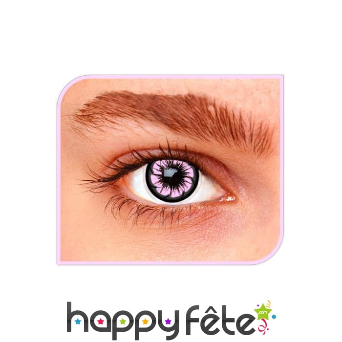 Pour incarner un personnage asiatique de manga, l'effet spécial le plus épatant que vous pourrez utiliser est la lentille de contact. Le modèle présenté est justement dans le thème manga et il affiche un motif de fleur de couleur rose. Vous disposerez donc de superbes lentilles roses, de nature souple, sans dioptries et conservables dans des flacons en verre accompagnés de solution saline. Vous avez le choix entre des lentilles d'un mois de durabilité ou des modèles utilisables pour trois mois.