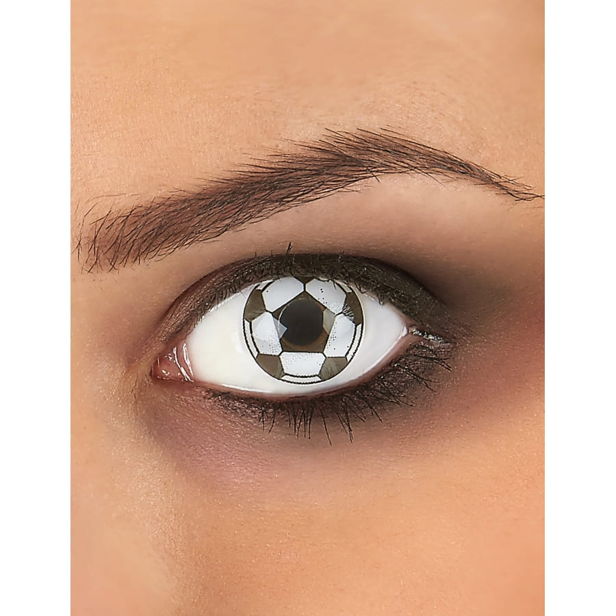 Fanatiques du ballon rond, ces lentilles sont faites pour vous ! Voici des lentilles de contact à thème football. Chaque lentille vous permettra d'avoir un ballon de foot de couleur noire et blanche au milieu de chaque oeil. De qualité souple et sans dioptries, elles se conservent et s'entretiennent avec de la solution saline, chacune dans un flacon en verre. Vous pourrez opter pour des lentilles utilisables pendant un mois ou des modèles d'une durabilité d'un an. Elles vous permettront d'avoir le look du parfait supporter !
