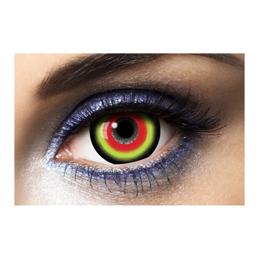 Ces lentilles sont de couleur noir, vert, rouge et gris, et mesurent 17 mm de diamètre.