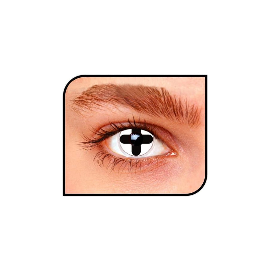 Avec ces lentilles de contact à thème "Knock out", vous allez pouvoir revivre le fantastique manga relatant l'histoire de la naissance d'un grand boxeur. Elles vous donneront un regard particulier avec un motif de croix noire sur fond blanc. Ces lentilles sont souples, sans dioptries et se conservent dans des flacons. Concernant leur durée d'utilisation, vous pourrez les porter sans problème pendant 1 mois.