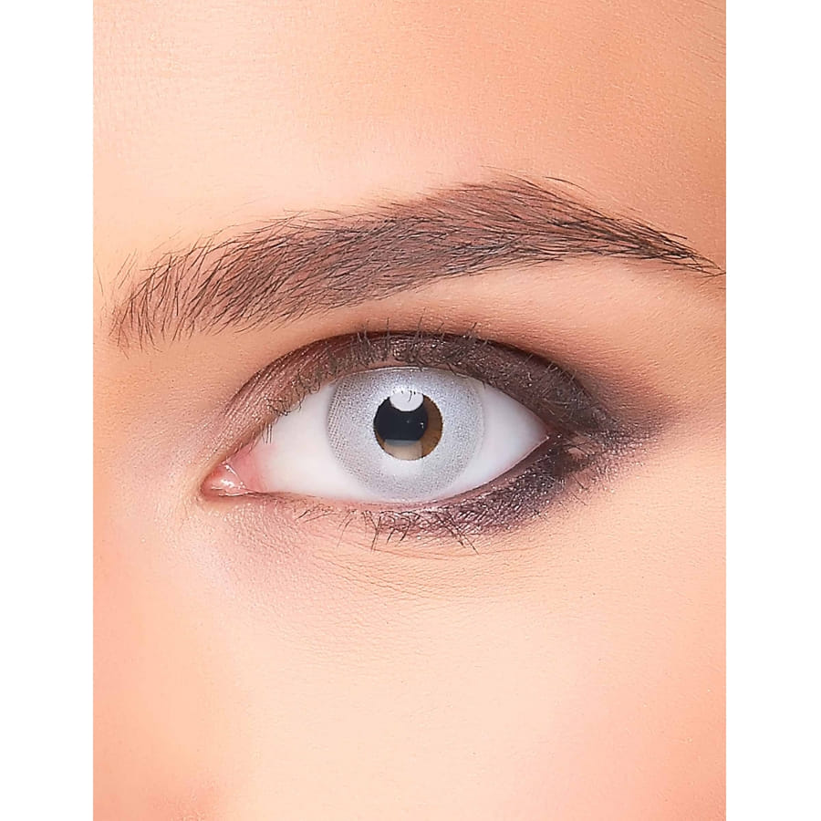 Il s'agit d'une paire de lentilles de couleur blanc argente réservée aux adultes.