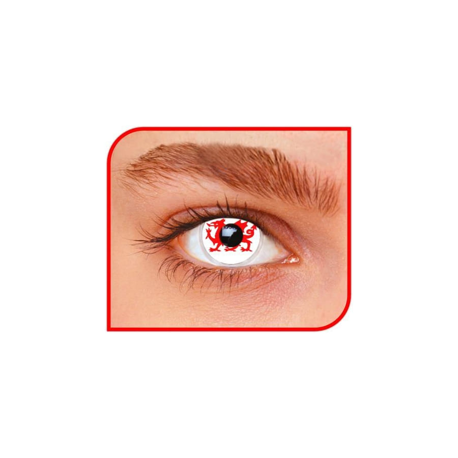 Pour célébrer dignement la fête nationale, pour supporter votre équipe préférée, ou tout simplement pour l'amour de votre patrie, adoptez ces lentilles à thème drapeau du Pays de Galles. Le motif du dragon rouge a été travaillé minutieusement et il est présenté sur un fond blanc. Ces lentilles de contact sont de nature souple, sans dioptries, et elles se conservent dans des flacons en verre avec de la solution saline. Vous pourrez les porter quotidiennement ou occasionnellement pendant un mois, mais vous pouvez aussi choisir le modèle qui dure un an.