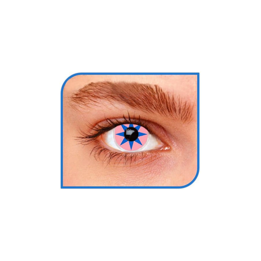 Vous deviendrez une vraie star avec ces lentilles de contact ! Il est certain que vous serez loin de passer inaperçu avec un regard aussi original. Disposez sans attendre de ces modèles à motif en forme d'étoile. Chaque lentille présente une étoile de couleur bleue sur un fond rose. Elles sont de nature souple, démunies de dioptries et se conservent dans des flacons en verre avec de la solution saline. Vous pourrez choisir entre un mois ou un an de durée d'utilisation.