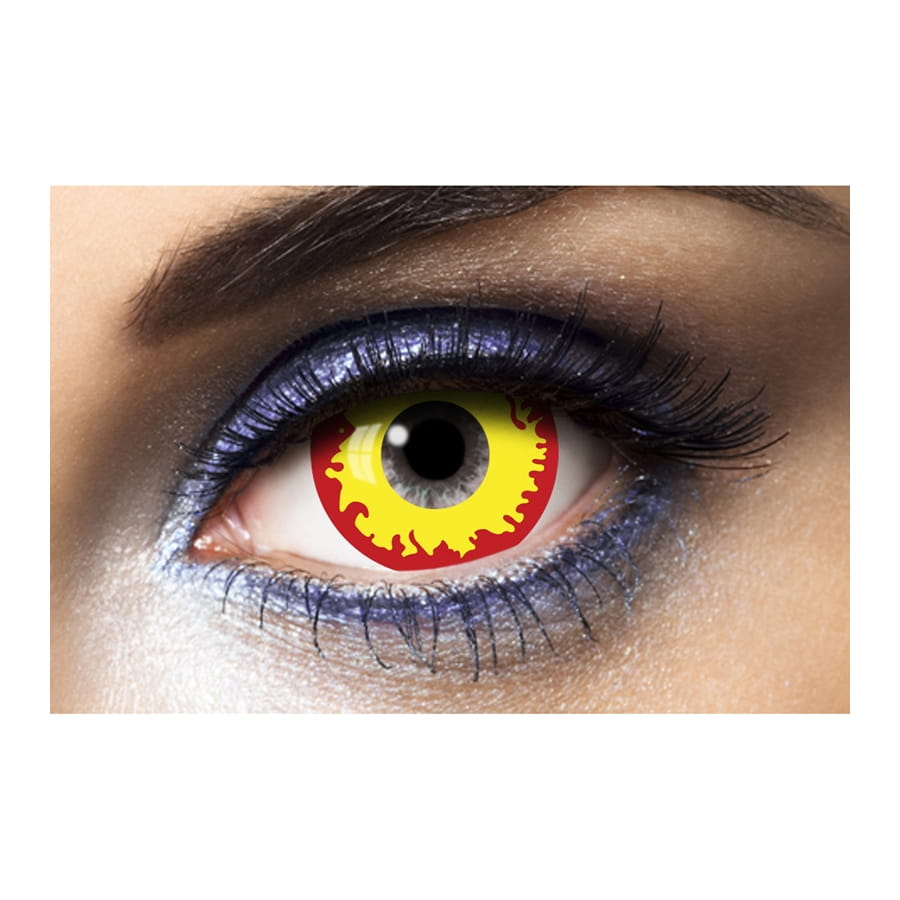 Ces lentilles yeux de feu de 17mm sont maintenant à votre disposition ! Elles sont spécialement conçues pour adultes. Le contour, dans les tons de jaune et rouge, semble enflammé. Chaque lentille a un diamètre de 17 mm. Ce sera un complément parfait pour un déguisement de diable ou de monstre. Indispensable pour fêter Halloween !