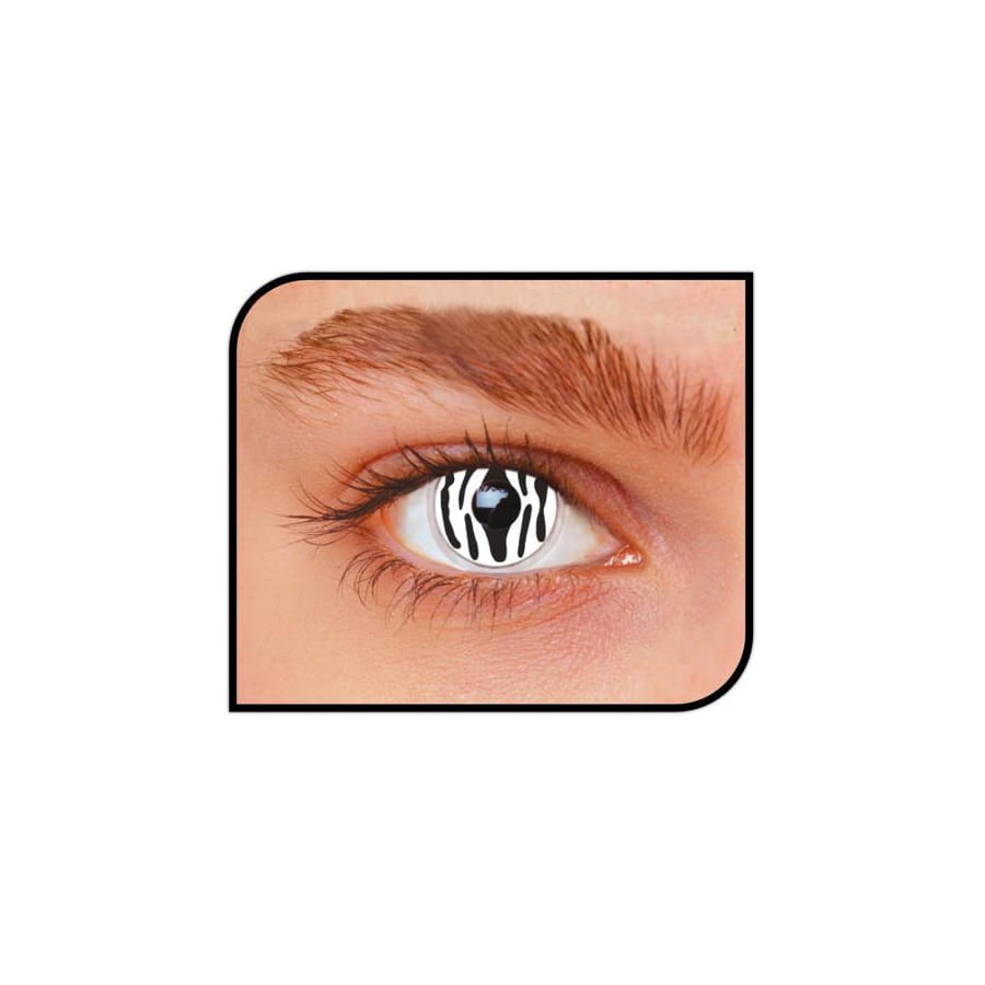 L'un des plus surprenants animaux de la jungle est représenté à travers des lentilles de contact ! Qui aurait cru un jour avoir un regard blanc rayé de noir comme la couleur de la robe d'un zèbre ! Et pourtant, ces lentilles de nature souples et sans dioptries affichent du noir et du blanc disposés à la manière zèbre ! Chacune d'elles se conserve dans un flacon en verre avec une solution saline. Vous pourrez choisir entre un article utilisable pendant un mois ou un autre d'une durabilité de un an.