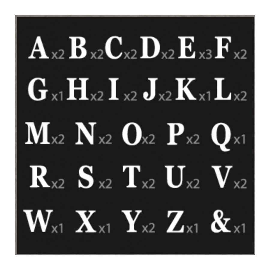 Le nombre de chaque lettre est indiqué sur la planche du visuel.