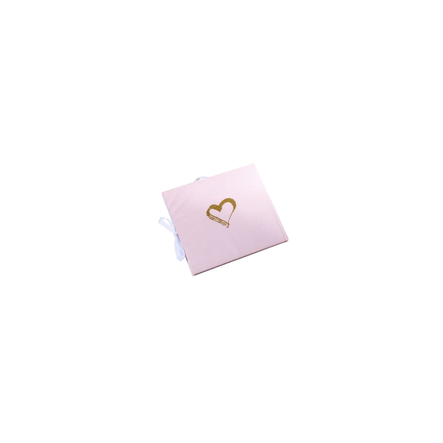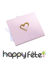 Ce livre de couleur blanc et or pailleté mesure 22 x 19 cm et est imprimé d'un coeur doré à l'arrière.