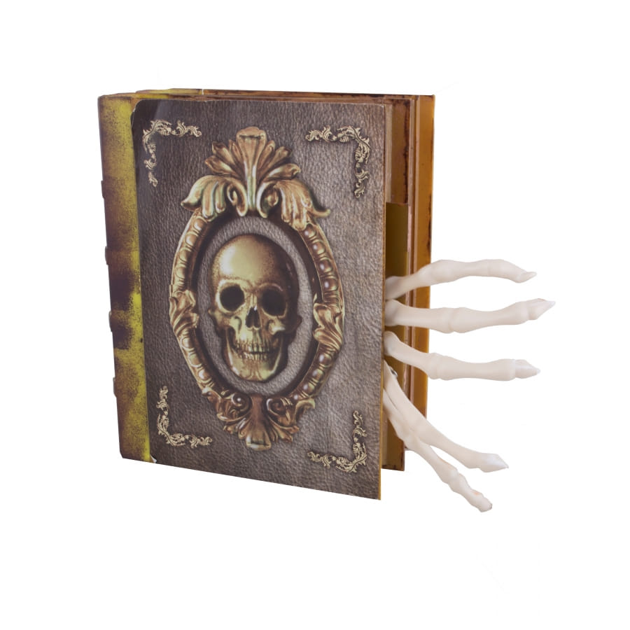 Le livre de sorcier animé avec main squelette de 16 x 20 cm peut être utilisé comme décoration où animation.