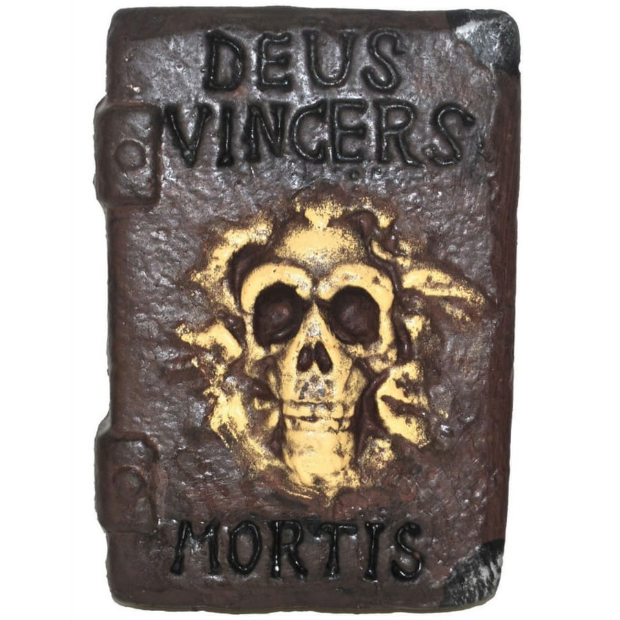 Le livre de sorcier avec crâne en relief est un document contenant les secrets occultes de l'au-delà.