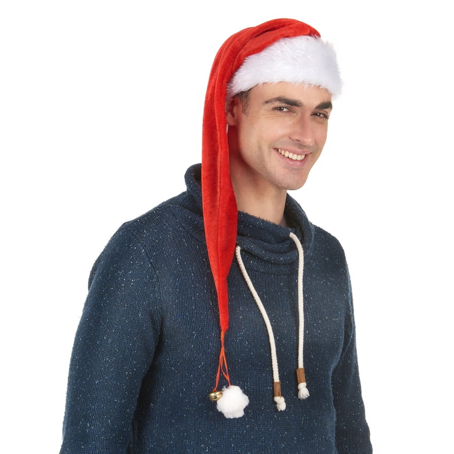 Pour parfaire votre déguisement lors des fêtes de fin d'année, nous avons ce long bonnet de Noël rouge effet velours.