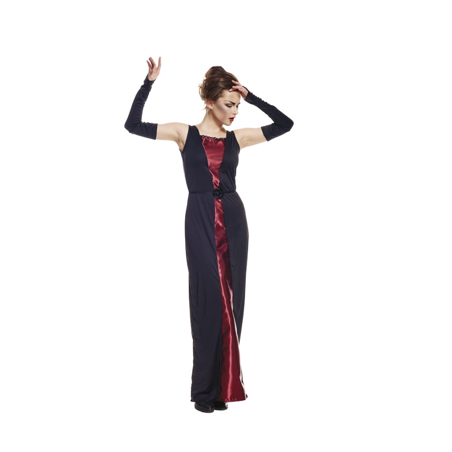Un vampire en version féminine ! Découvrez vite ce que le long déguisement de femme vampire noir et rouge a à vous offrir. Élégance, raffinement et distinction sont les mots d'ordre de cette somptueuse robe. Ce long modèle à manches courtes descend jusqu'aux pieds. La couleur noire prédomine, mais vous retrouverez aussi un superbe rouge satiné sur le devant de la robe. De longues mitaines noires vous sont offertes, afin de souligner le côté chic de la tenue. Pour incarner au mieux un vampire de l'époque moderne, n'hésitez pas à vous fournir en maquillage dans notre section cosmétique. Relevez votre coiffure, rajoutez une paire de talons hauts, et vous ne pourrez plus vous passer de cet ensemble !