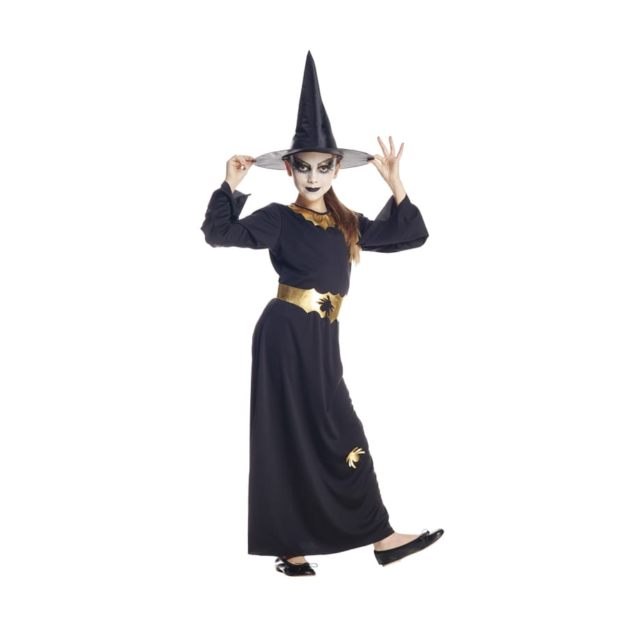 Voler sur un balai, prononcer des incantations, se transformer en un coup de baguette magique, il existe tellement de pouvoirs qui font des sorcières l'un des premiers choix en matière de déguisement d'Halloween. Les petites filles vont vite craquer pour ce long déguisement de sorcière araignée enfant. L'article est formé d'une longue robe noire avec ceinture intégrée. Ce qui la rend particulière, ce sont les superbes motifs araignée qui sont dessinés aussi bien sur la robe que sur la ceinture. Un beau chapeau pointu de sorcière accompagne l'ensemble. Vous disposerez d'un modèle de couleur noire. Vous voilà avec une apprentie sorcière en herbe. Si vous le désirez, vous pouvez ajouter quelques accessoires à la tenue.