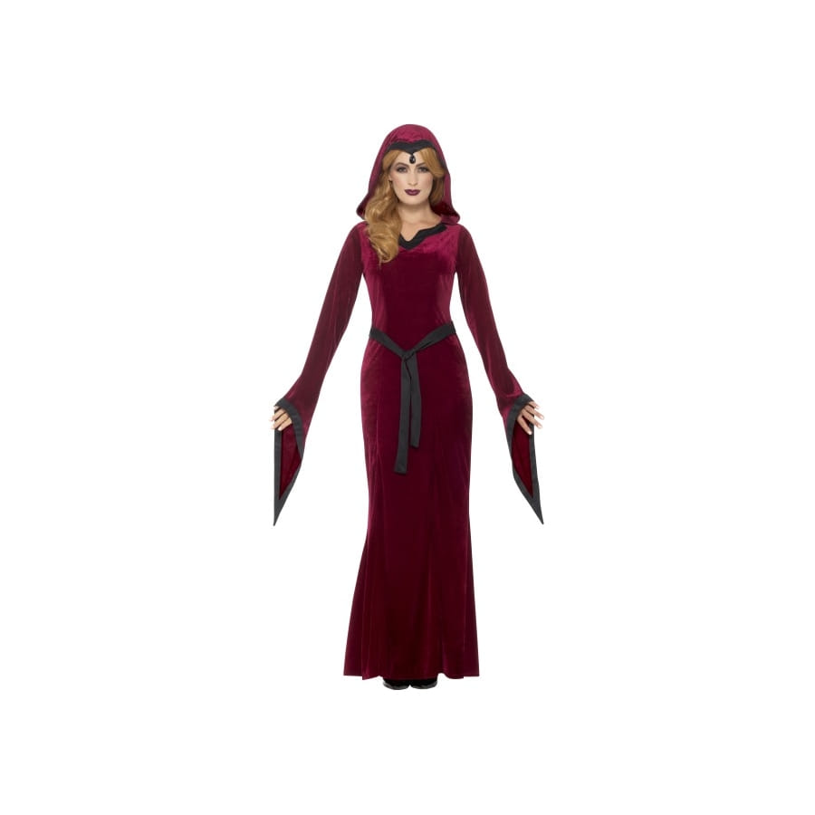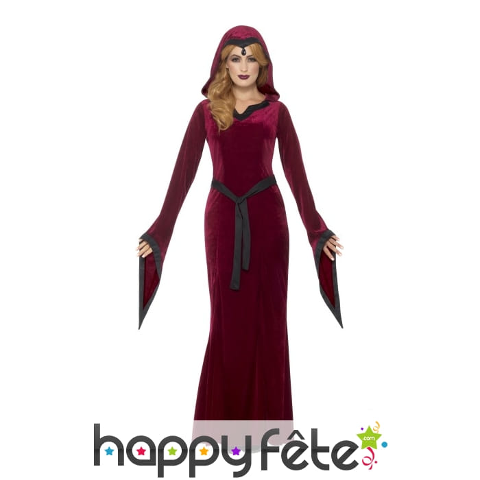 Pourquoi ne pas choisir un petit voyage dans le temps pour halloween avec le long déguisement médiéval rouge de vampiresse présent sur notre site Happyfete ? Si vous êtes adepte du rouge, vous serez servie étant donné que le costume est majoritairement composé d'une robe à capuche rouge conçu dans du velours. Elle est bordée d'un tissu noir au niveau de la capuche ainsi qu'au bout de ses manches longues, tandis que la taille est soulignée par une ceinture noire. La couleur rouge renvoie au sang et vous plongera dans l'univers vampirique. Si vous voulez un total look vampire, nous vous conseillons les dents de vampire, mâchoire du haut que vous retrouverez également sur notre site.
