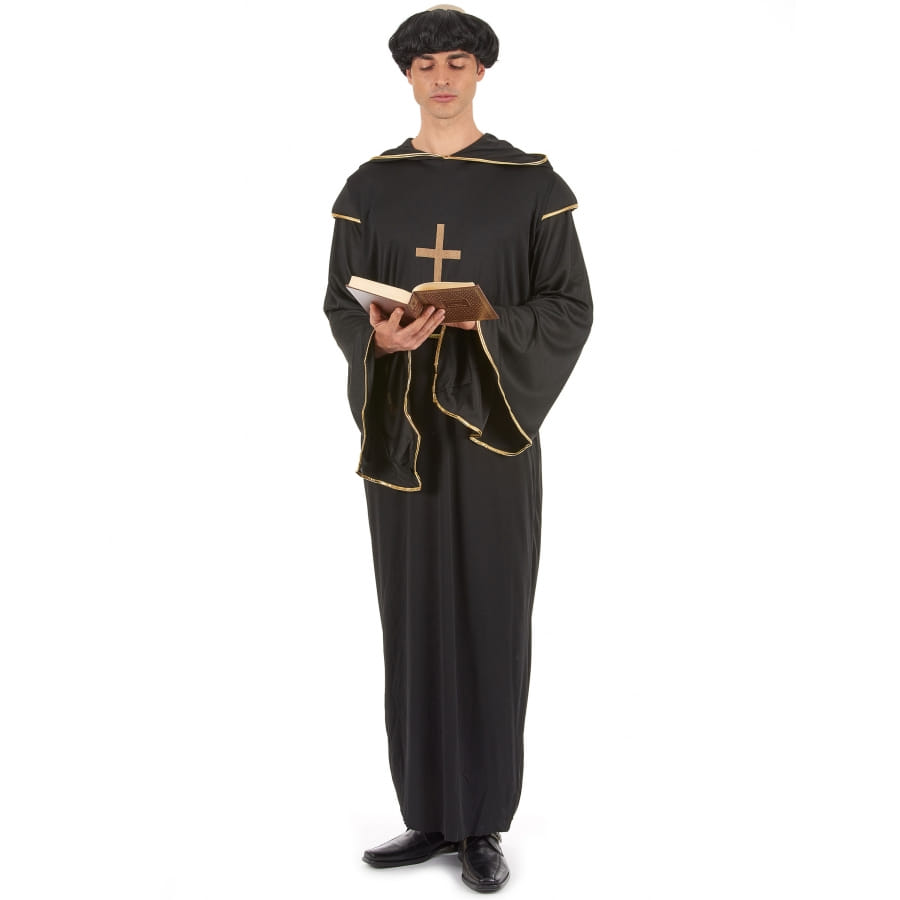 Long déguisement noir et doré de religieux idéal pour vous habiller à l'occasion des fêtes costumées ou d'un enterrement de vie de garçon.