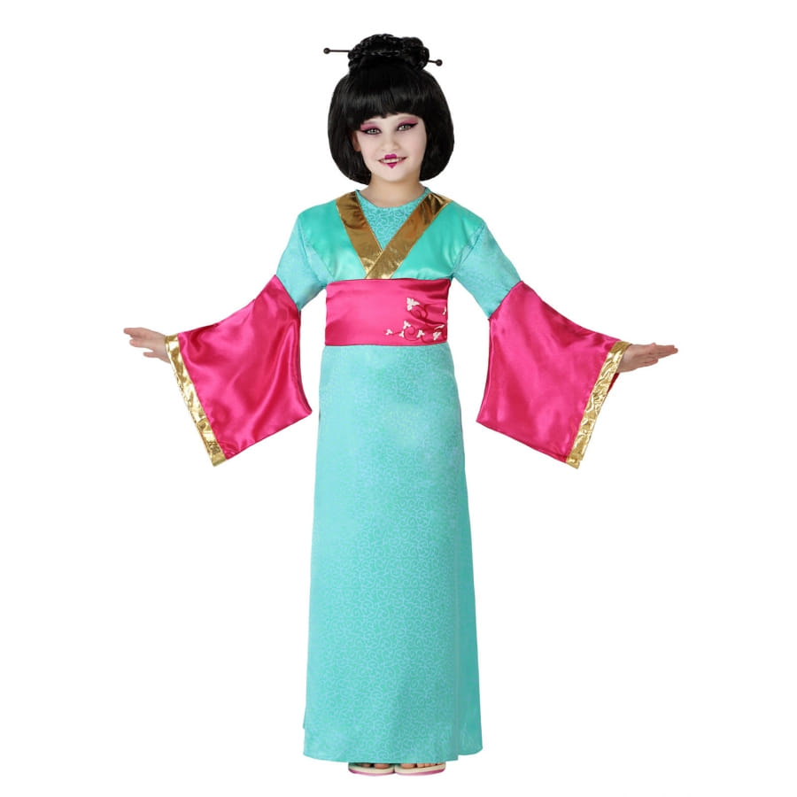 Immergez votre fille dans la pratique raffinée des arts traditionnels japonais, avec notre long kimono vert rose pour fillette.