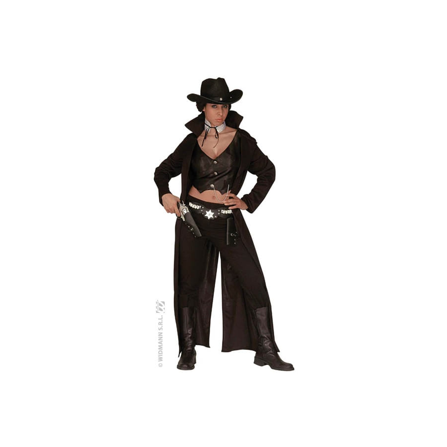 Mesdames, si vous avez toujours été très cavalière, avec un caractère de fer, vous devriez vous déguiser en Cow boy pour votre prochaine fête déguisée. Et pour bien vous faire remarquer, vous devriez agrémenter votre tenue avec ce long manteau marron, qui vous arrivera jusqu'à la cheville, avec des cols montants, de longues manches et un long fendu à l'arrière. Il est accompagné d'un tour de cou blanc avec un lacet marron.