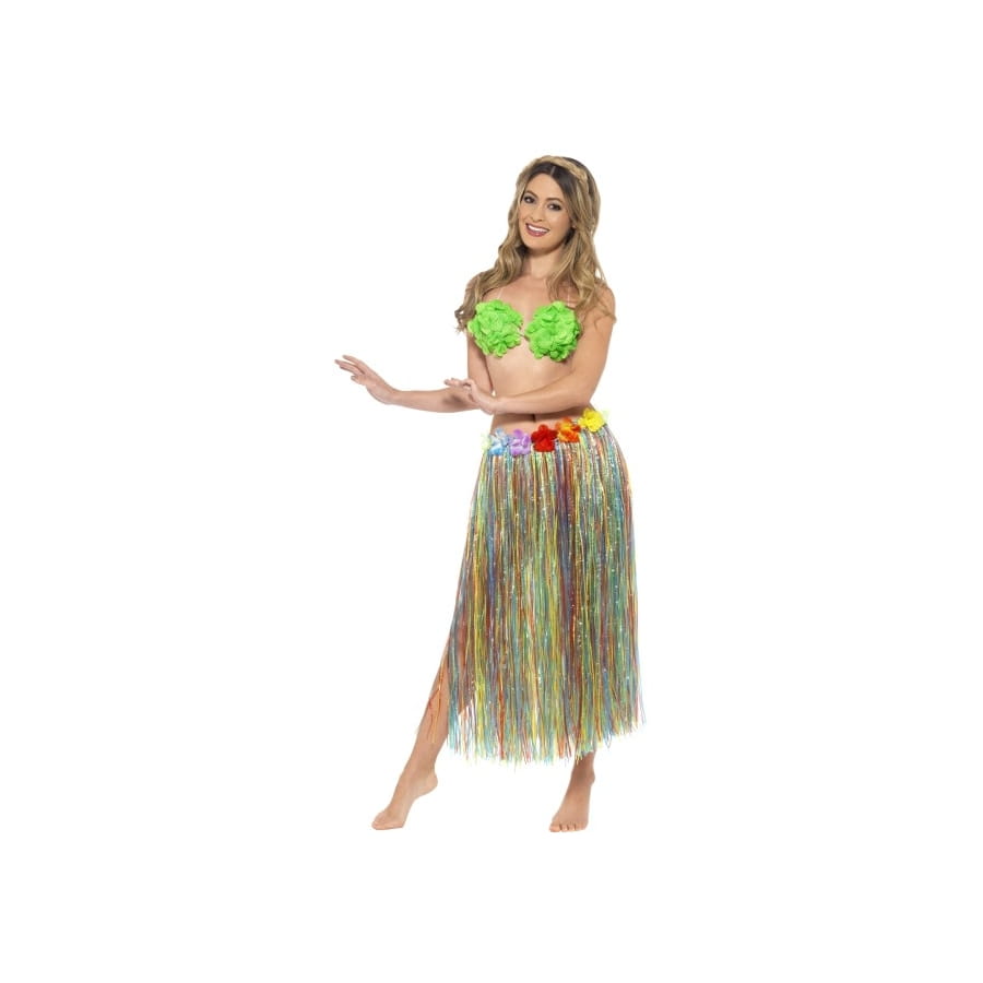 Incarnez la beauté incomparable des jeunes danseuses (ou danseurs) tahitiennes avec ce sublime accessoire long pagne Hawaïen multicolore fleuri que nous vous proposons ! Ce long panne si scintillant arbore toutes les couleurs. Il est orné de jolies fleurs autour de la taille. C'est un accessoire pour femme, conçu pour être porté à l'occasion d'un événement festif sur le thème "Exotique", "Antilles" ou "Vacances"...