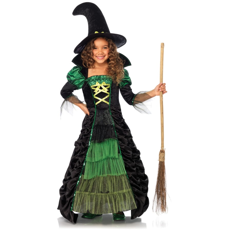 La longue robe noire et vert de petite sorcière est un costume très élaboré.