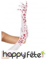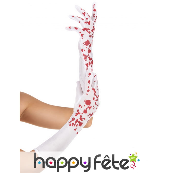 Les longs gants blancs tâchés de sang pour femme mesurent 42 cm.
