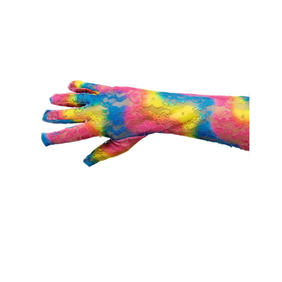 A l'occasion du prochain carnaval sur le thème Année 70-80, ces longs gants en dentelle multicolores seront parfaits pour compléter votre déguisement.