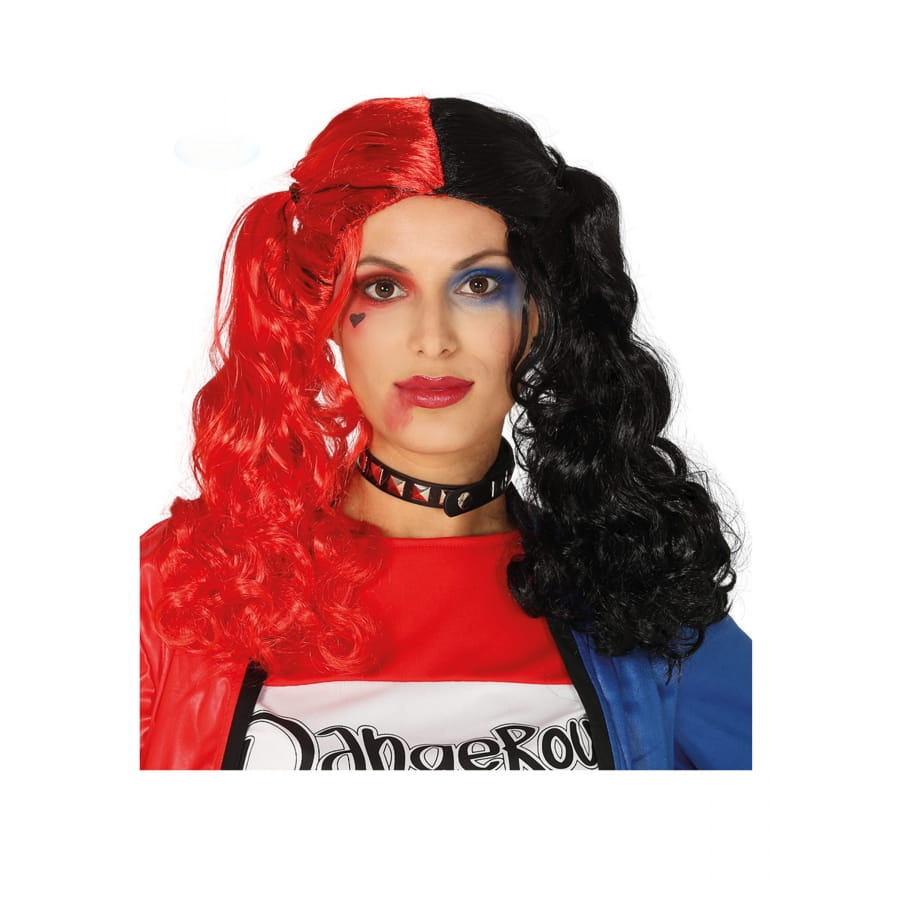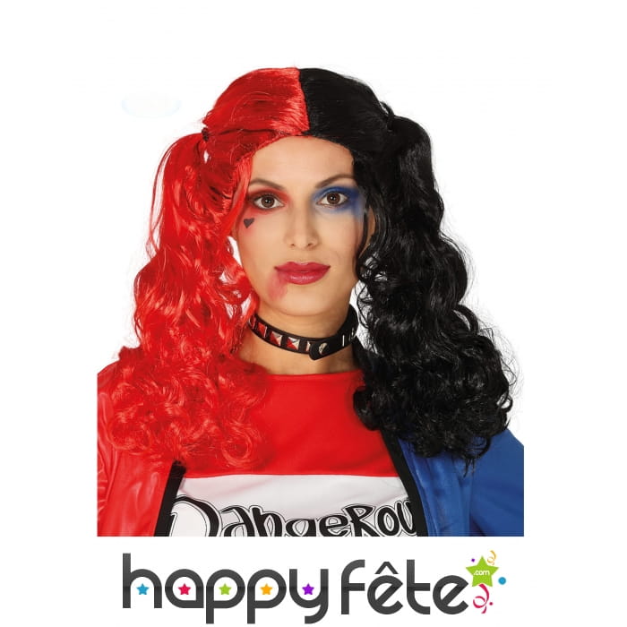Incarnez l'indomptable Harley Quinn et son style décalé, en portant la longue perruque arlequin avec couettes, bouclée.