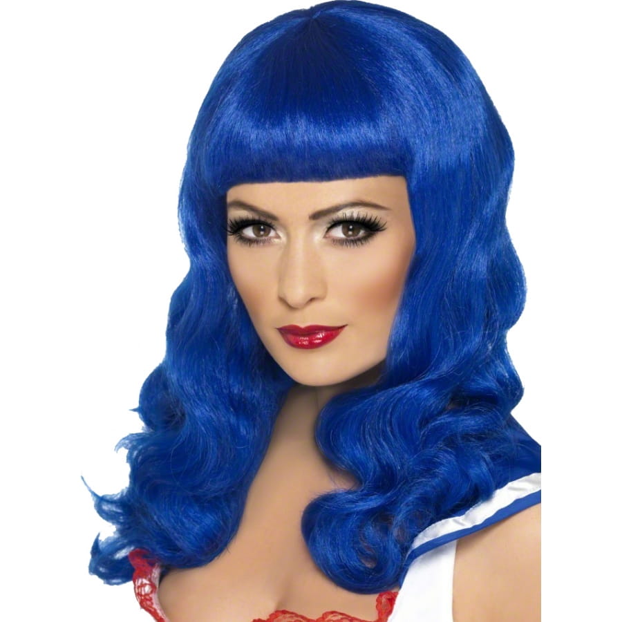 Cette superbe perruque vous ira parfaitement si vous incarnez un personnage de manga ou une star de la chanson. Cette belle perruque bleue vous sera utile si vous vous transformez en célébrité. D'une belle couleur bleu, les cheveux sont mi longs avec des ondulations et une frange.