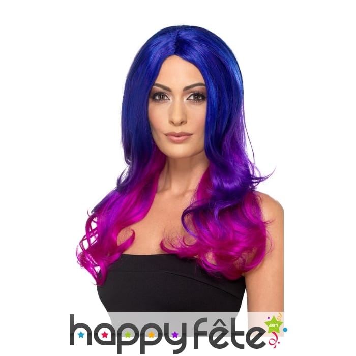 Cette longue perruque bleue teintes de violet, ondulée vous transformera de par ses couleurs chatoyantes.