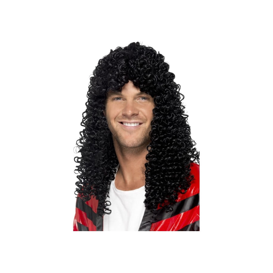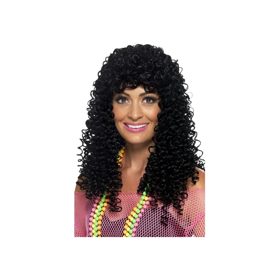 Pour une fête disco parfaite, il faut que vous ayez la bonne tenue avec cette longue perruque à effet mouillé de pop star des années 80 que nous vous proposons ici. Elle est entièrement de couleur noire avec des jolies petites boucles, idéale pour homme et pour femme. N'oubliez pas le costume de hippie ou bien de disco à paillettes que vous pourrez trouver parmi nos déguisements si vous n'en avez pas.