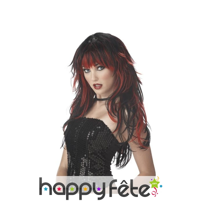 Apportez une petite touche rebelle à votre look le temps d'une soirée d'Halloween, avec la perruque gothique noire mèches rouges.
