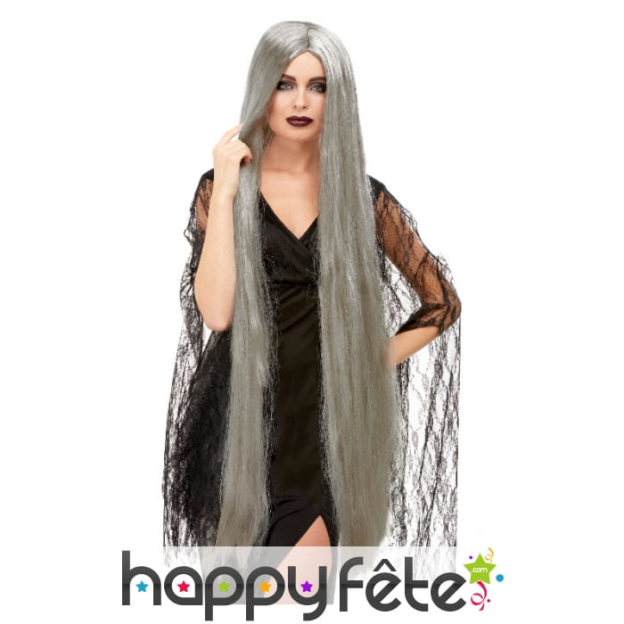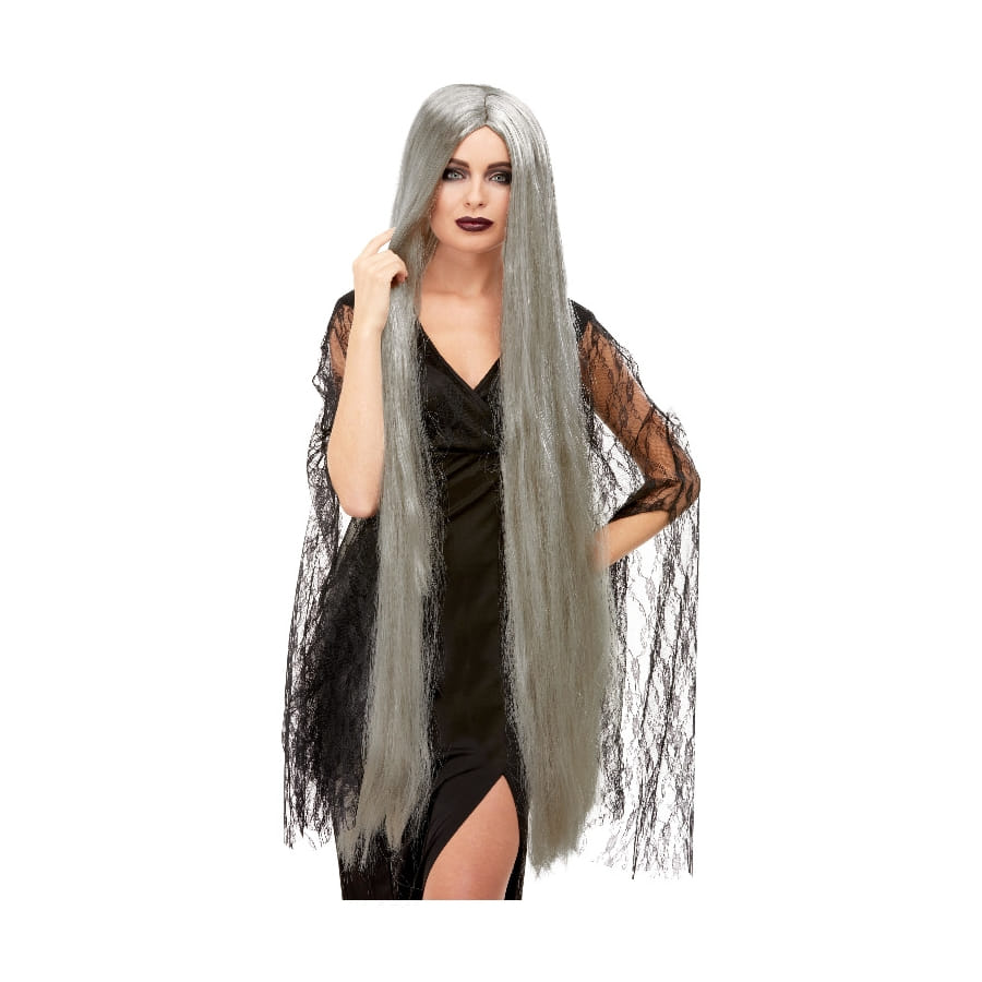 Avec cette longue perruque grise de 120 cm, votre déguisement de vieille sorcière sera encore plus parfait.