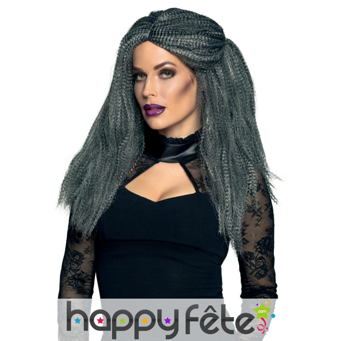 Changez de tête à Halloween et surprenez en arborant la longue perruque grise effet gaufré pour adulte.
