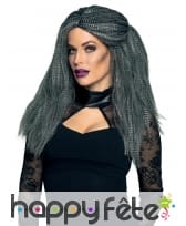 Elle est gaufrée tout le long et composée de cheveux synthétiques de couleur grise.