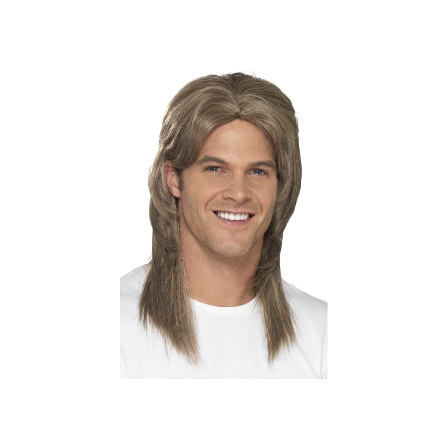 Outre le costume, que vous pourrez retrouver dans notre section déguisements, cette longue perruque mullet brune reflet blond parfera votre tenue de rocker des années 70 ou 80. La postiche est destinée aux hommes, de couleur brune mais avec des reflets blonds. Enfilez vite cette perruque et enflammez la piste de danse, ce soir, vous serez le roi de la fête !