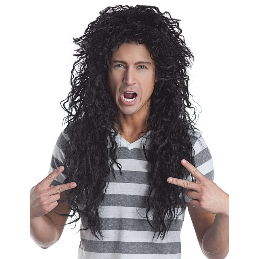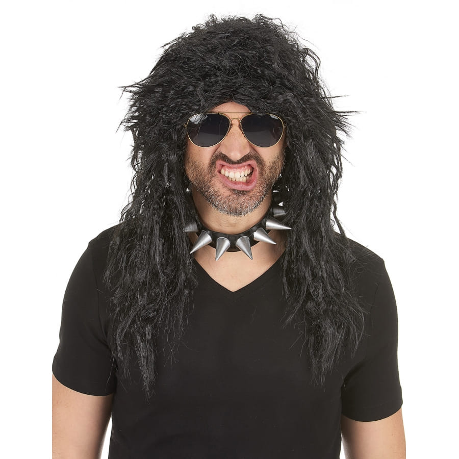 La longue perruque noire de hard rockeur est un accessoire pour homme.