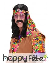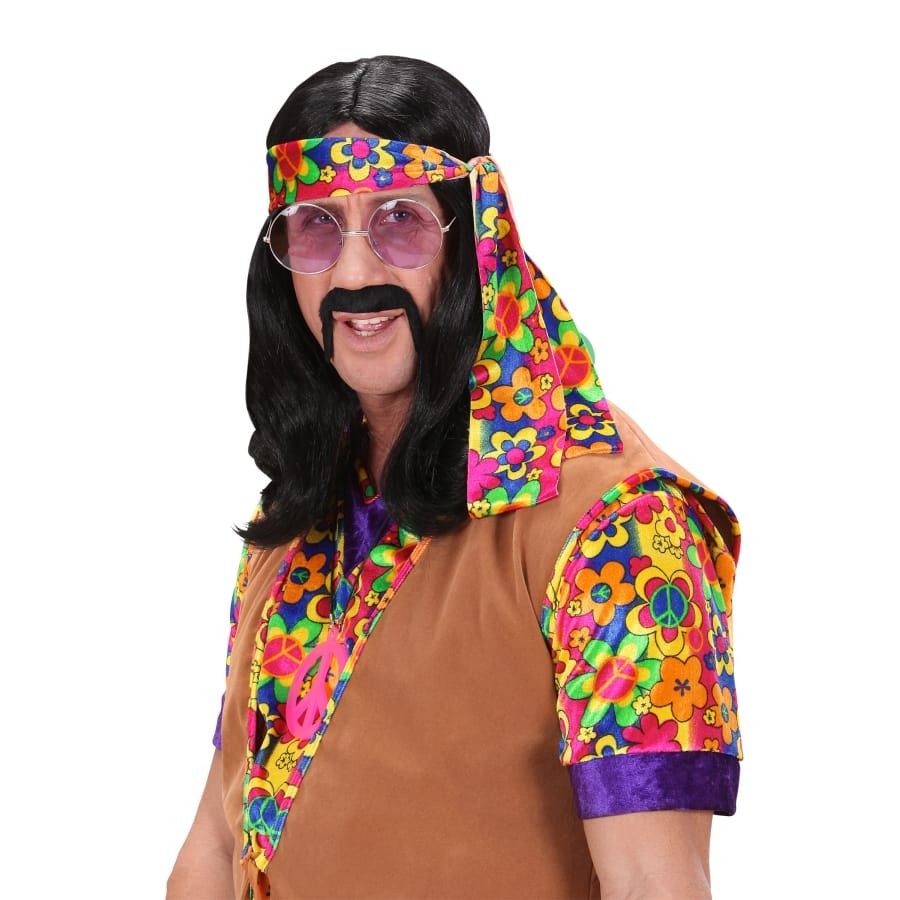 Cette longue perruque noire de hippie pour homme pourra donner plus de style ainsi que de réalisme à votre look.